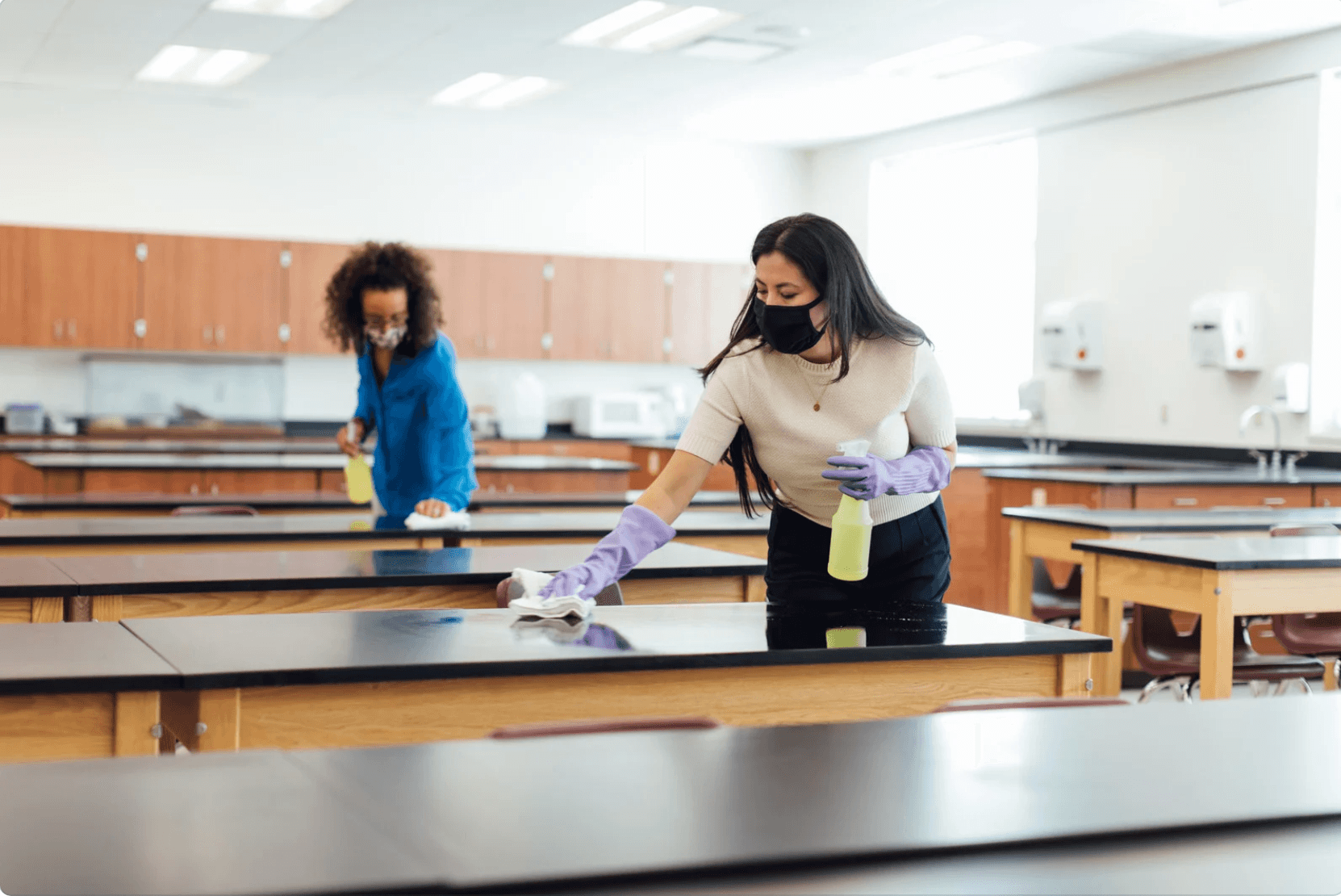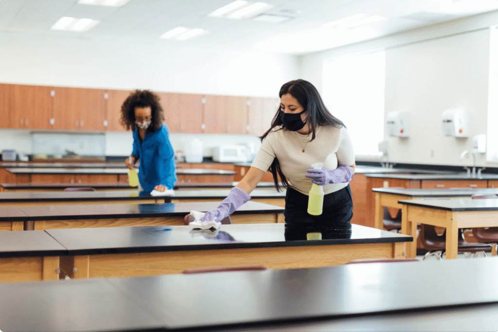 With professional cleaning, or with just your regular cleaners, make sure that the floors are regularly and frequently cleaned with the right cleaning tools and products to tackle the virus.