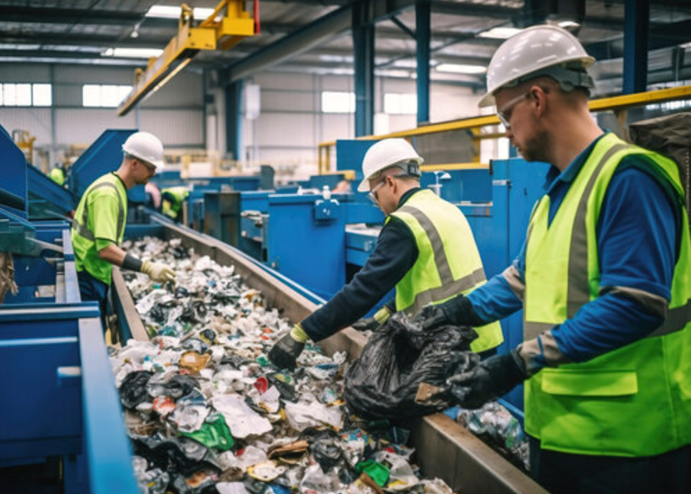 Sorting – Materials are sorted to separate paper, plastics, glass, metals, and other recyclables.