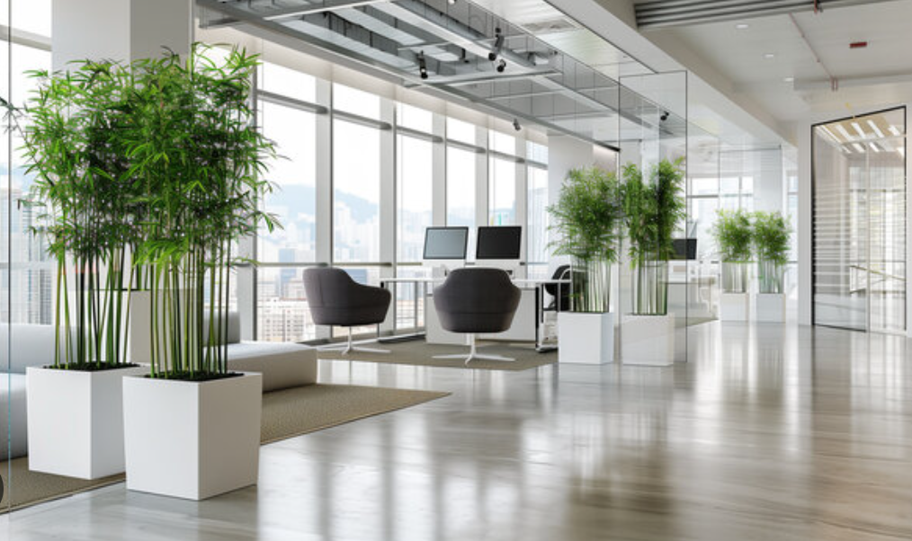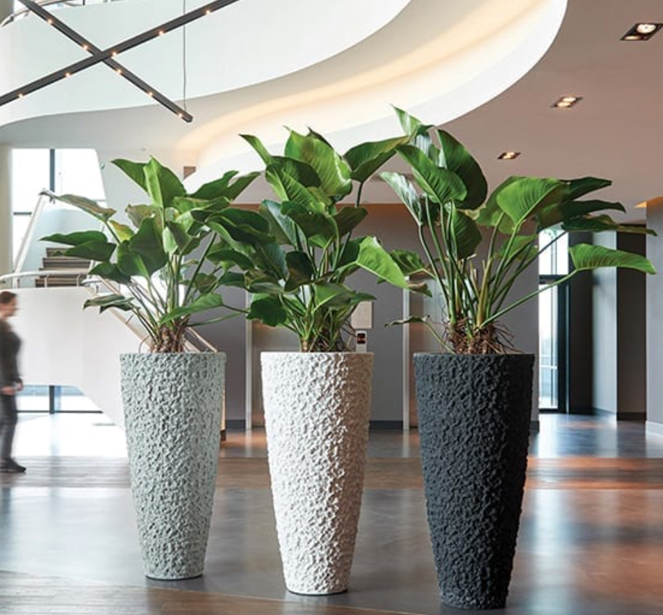 To prevent leakage on office floors, you can put saucers or pot plates to catch excess water. You can also consider double potting.